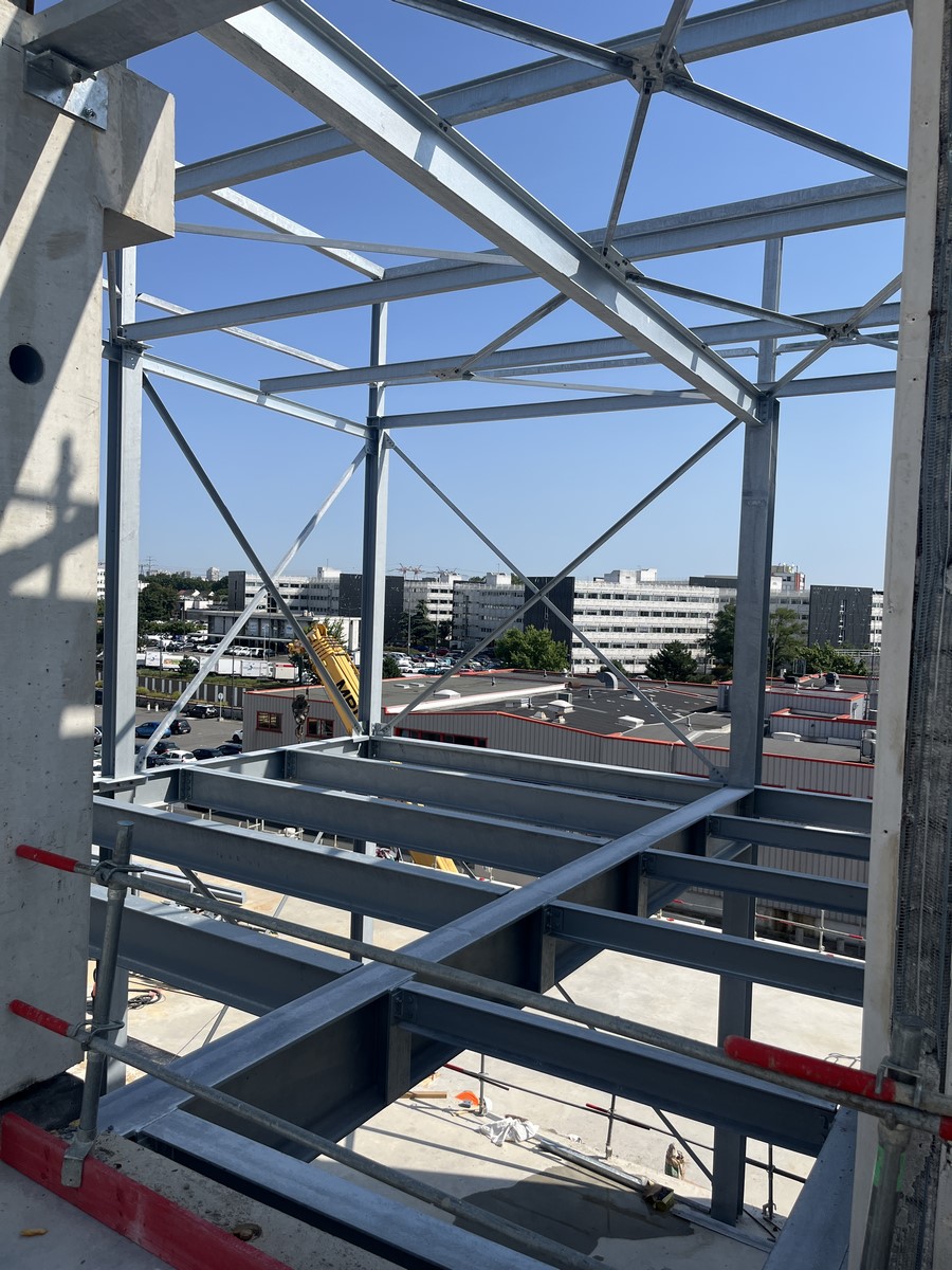 Dans le cadre d'un projet pour le compte d'Eiffage à Rungis, Daussy a réalisé en 2024 une structure métallique complexe de 150 tonnes sur une surface de 2500 m². Nos interventions ont porté sur : La charpente de couverture : Mise en place d'une charpente métallique secondaire sur une base en béton préfabriqué pour un bâtiment de R+3. Les SAS : Conception et réalisation complète des ossatures métalliques des SAS, incluant les planchers collaborants. Ce projet démontre notre capacité à répondre aux exigences les plus élevées en matière de construction métallique, alliant technicité et respect des délais.