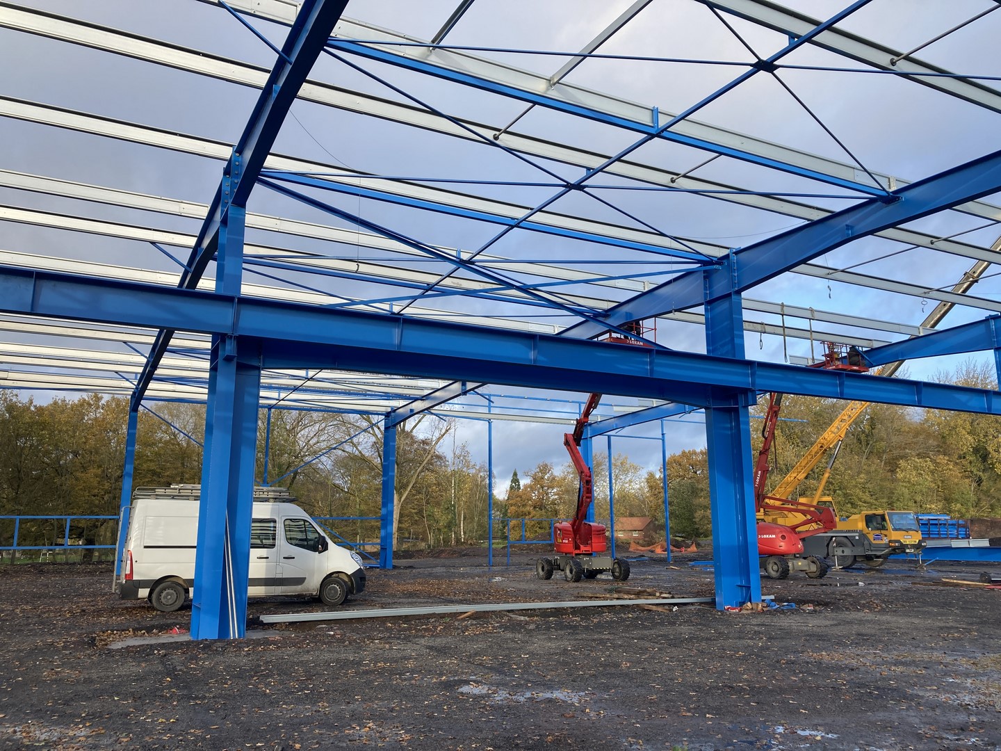 La charpente métallique, d'un tonnage de 100 T, est composée de portiques profils reconstitué soudé (PRS) permettant une grande portée.