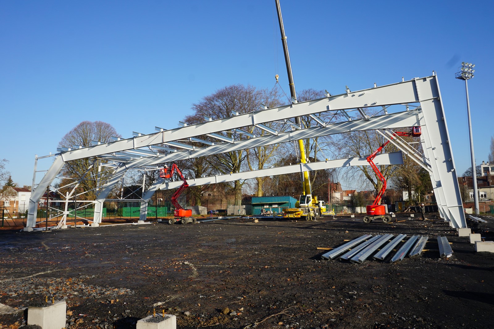 La Ville de Roubaix a confié à DAUSSY Constructions métalliques, la réalisation de la charpente métallique couvrant les trois nouveaux courts de terre battue du Racing Tennis Club de Roubaix.