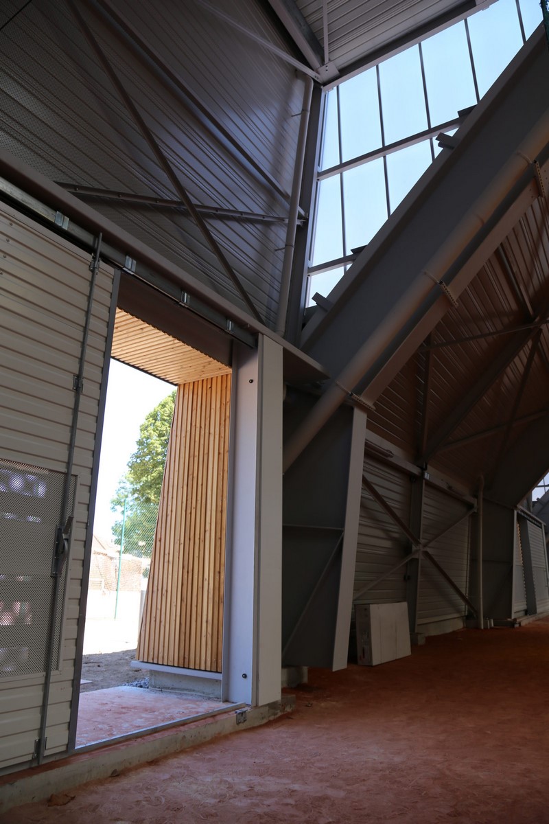 Le chantier, qui a débuté en 2019, a été achevé en 2020. La charpente est composée de portiques de 40 mètres de portée et de poutres de 1,50 mètre de hauteur en PRS.