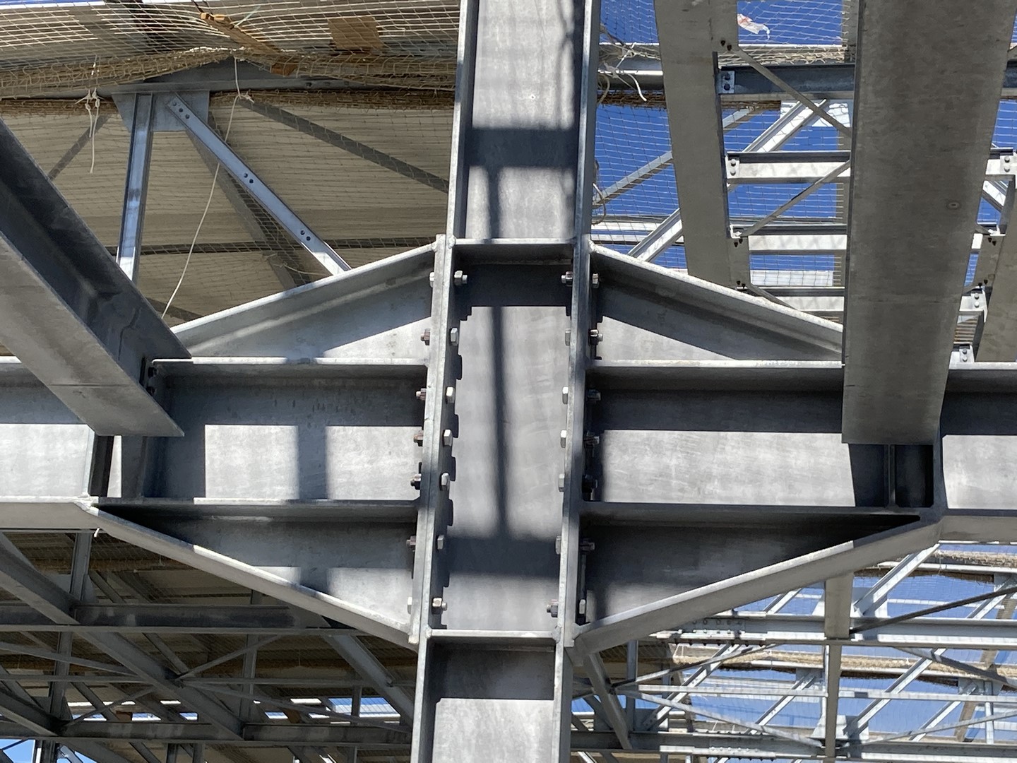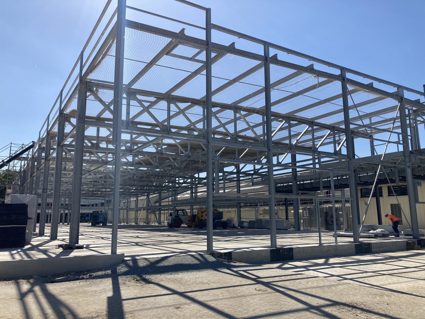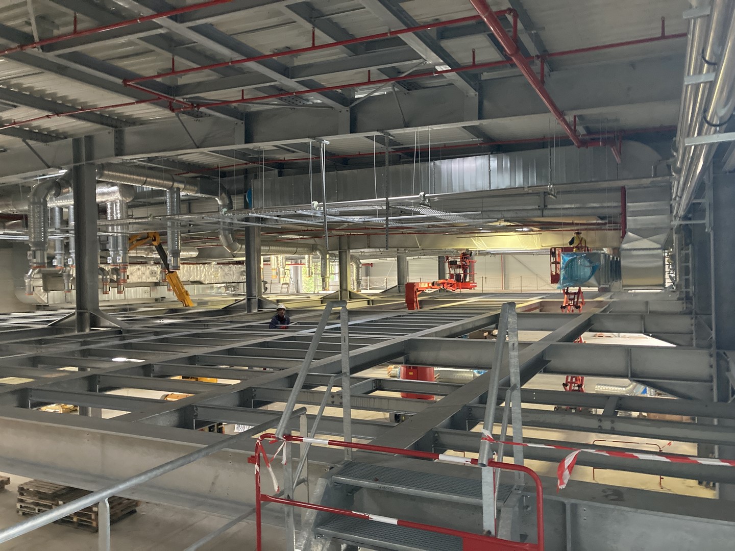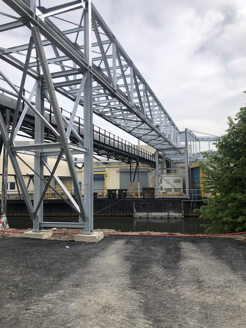 Structure en poutre treillis - charpente entièrement galvanisée à chaud. Réalisation d'une passerelle pour l'alimentation du bâtiment en fluide