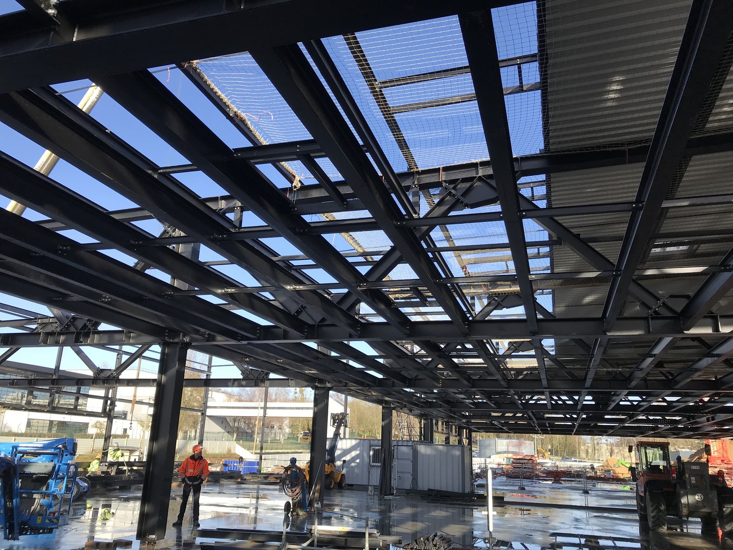 Plateforme technique en toiture + ossature support de process, de racks et de passerelles dans le plénum.